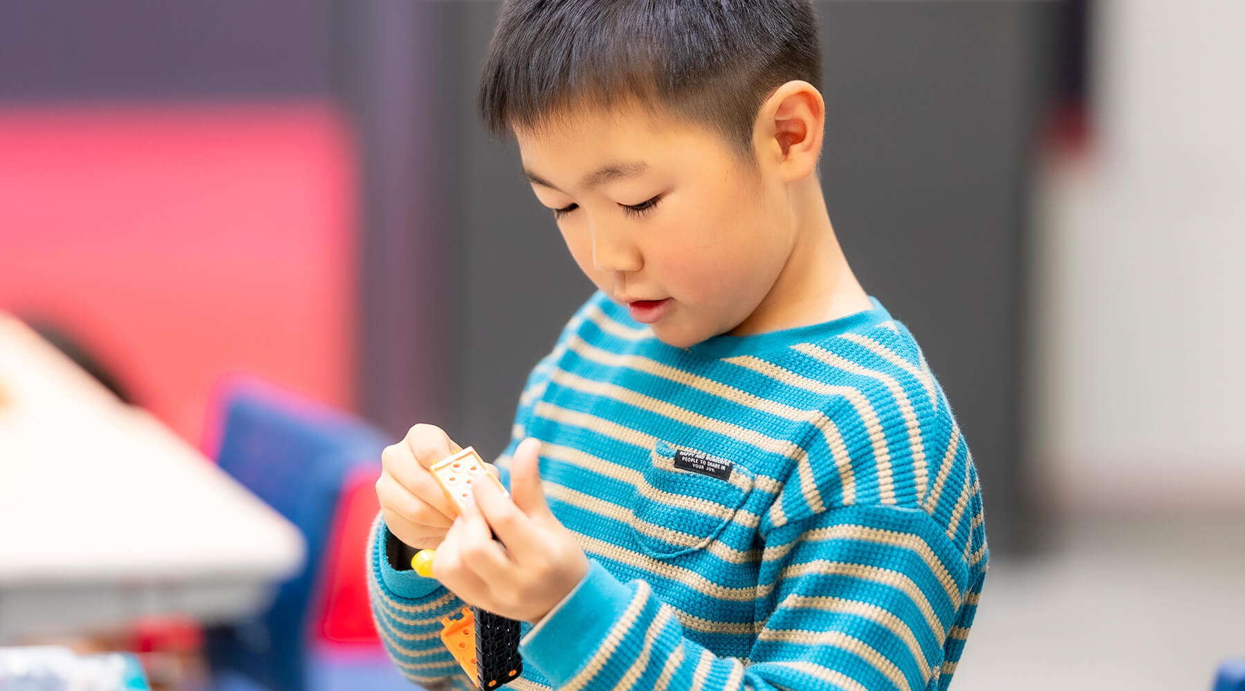 プログラミングやロボティクスで使⽤する単語やフレーズの英語学習と、英語でプログラミングやロボティクスを学ぶプログラムです。英語を使って好きなことを学ぶプロセスにより、学習に対するモチベーションや習得スピードを⾼めます。