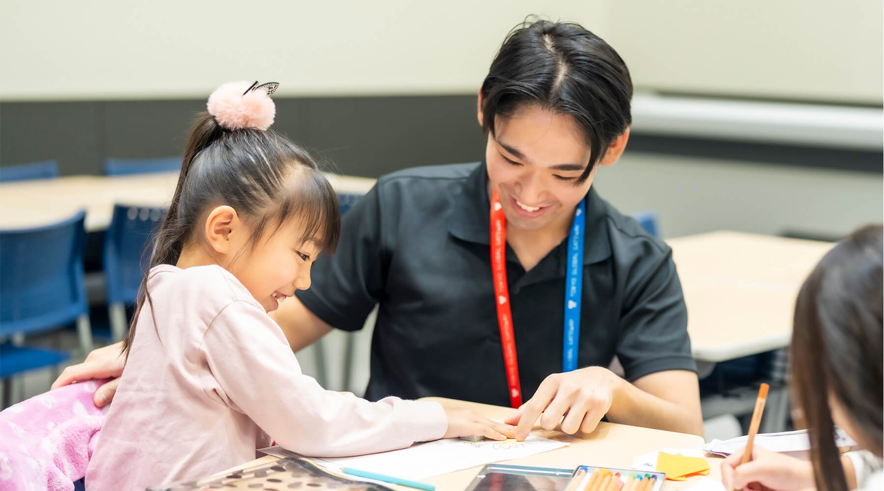 LACは、英語の知識を学ぶだけでなく、子ども達が「自分の気持ちや考えを英語で伝える力」を育むクラスです。相手の意見をしっかり聞き、対話を楽しむことを大切にしながら、実際のコミュニケーションを通して自然に英語力を伸ばしていきます。